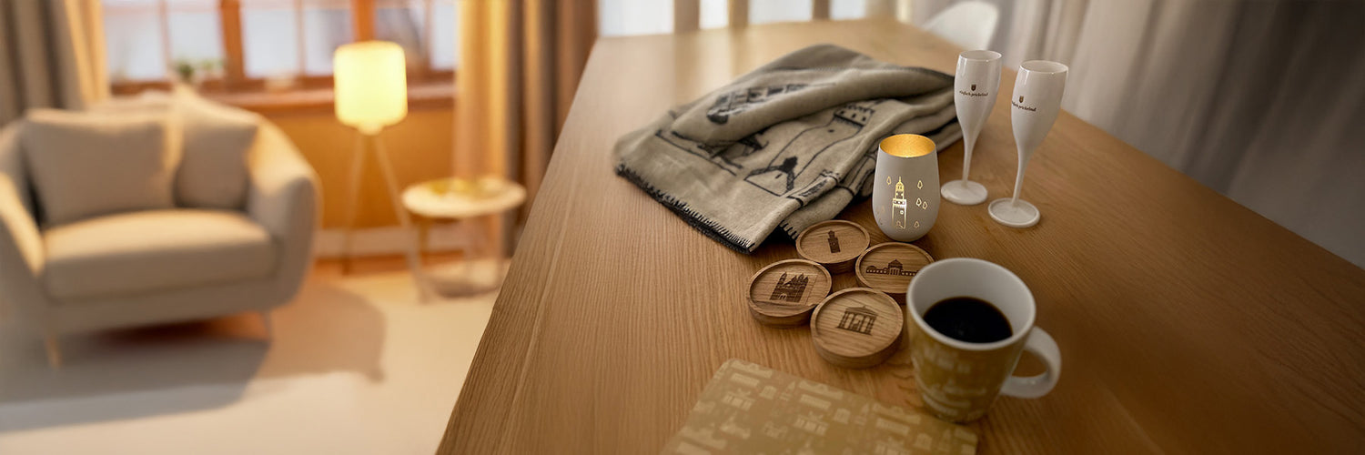 Ob als Erinnerung an unsere charmante Kurstadt oder als Ausdruck Ihrer Bad Homburg Liebe – in unserem Online-Shop finden Sie das passende Souvenir. Entdecken Sie stilvolle Bad Homburg Andenken, kuschelige Tagesdecken oder stylische Bekleidung mit dem original Bad Homburg Logo. Ergänzt wird die Auswahl durch saisonale Highlights.